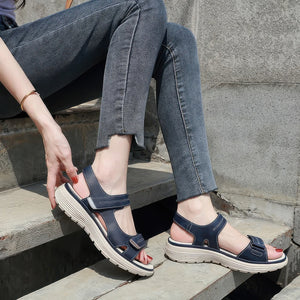 Step into summer with these stylish leather wedge sandals. Designed for all-day comfort, they feature a lightweight build, breathable design, and sports-inspired style. Perfect for women seeking large sizes, these sandals combine fashion and practicality, ensuring a snug fit and effortless elegance for casual outings or summer adventures.