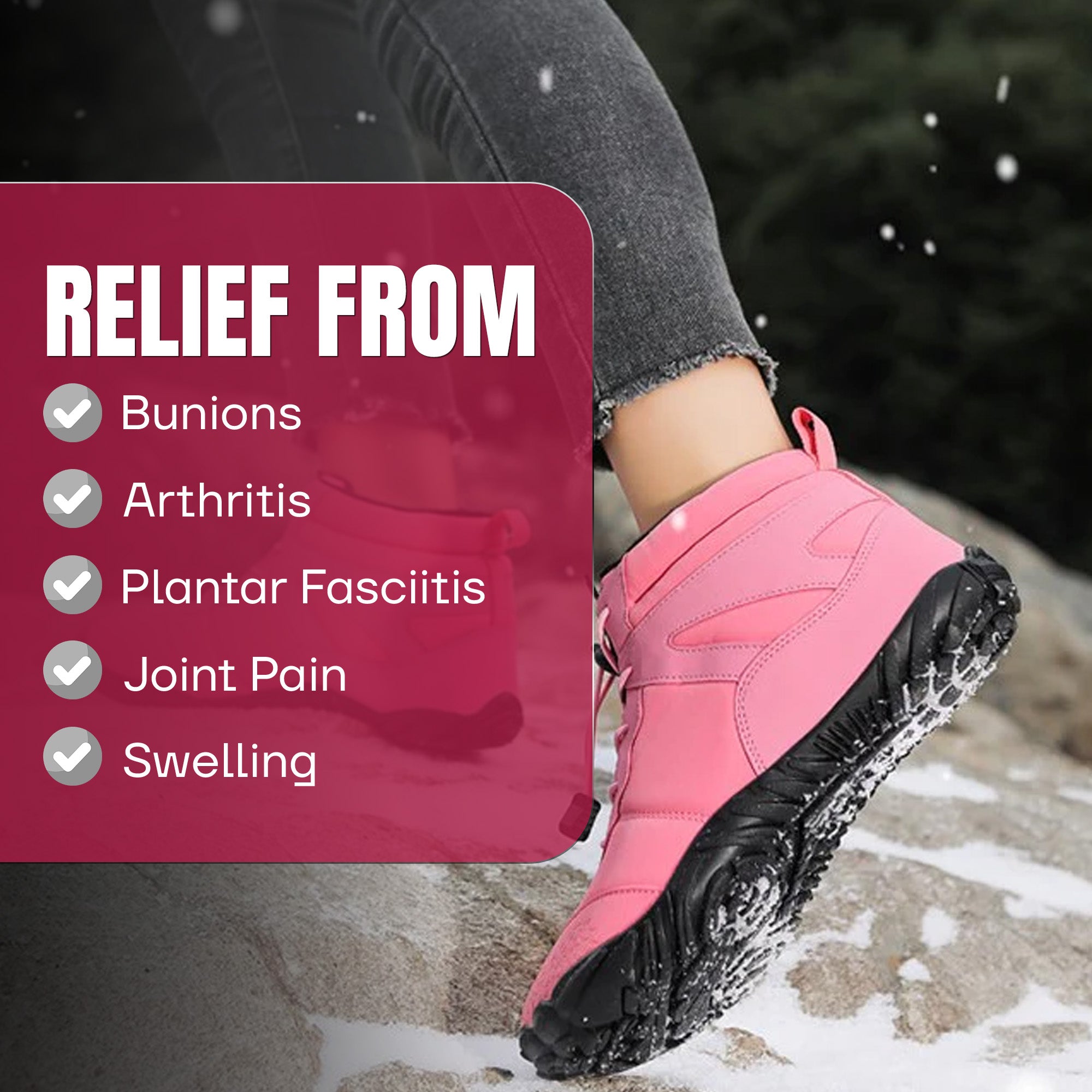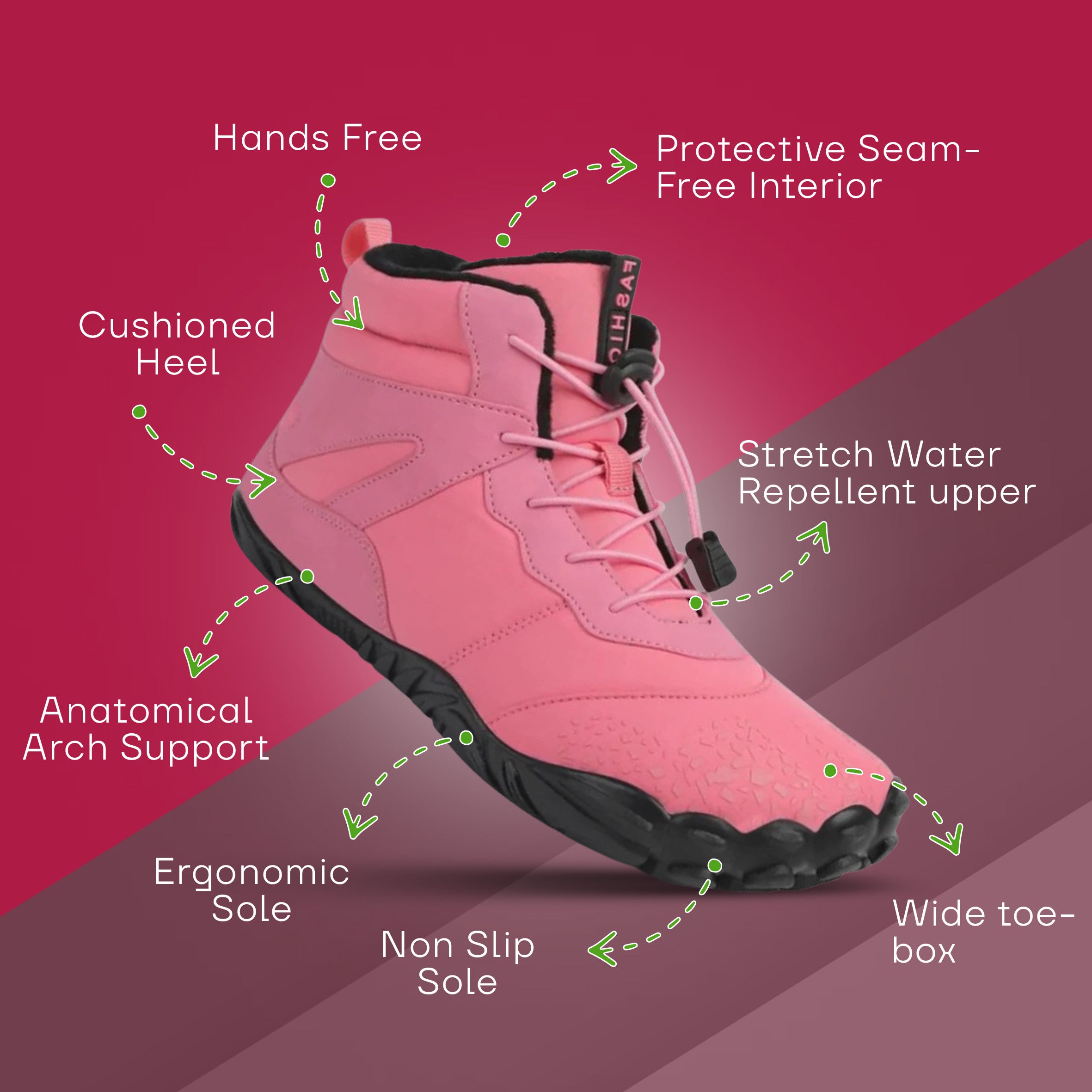 Gear up for winter adventures with these comfort barefoot-style snow boots for women. Designed with a waterproof exterior, warm insulation, and non-slip soles, these versatile ankle boots ensure comfort, protection, and stability on rugged terrains. Perfect for outdoor enthusiasts seeking durability and style in snow and cold weather.